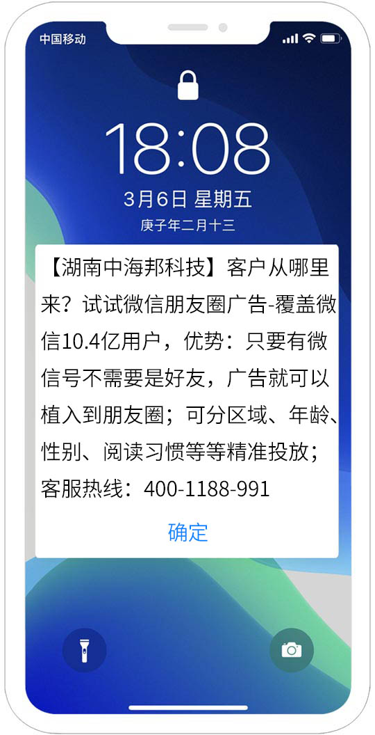 是指用戶在收到閃信群發內容后,無需打開,短信內容直接顯示在用戶手機屏幕上,用戶如果沒有點擊閱讀,則閃信內容一直有顯示,用戶必須點擊才能關閉,真正實現了高閱讀率、高到達率!提升了用戶對產品的轉化率!